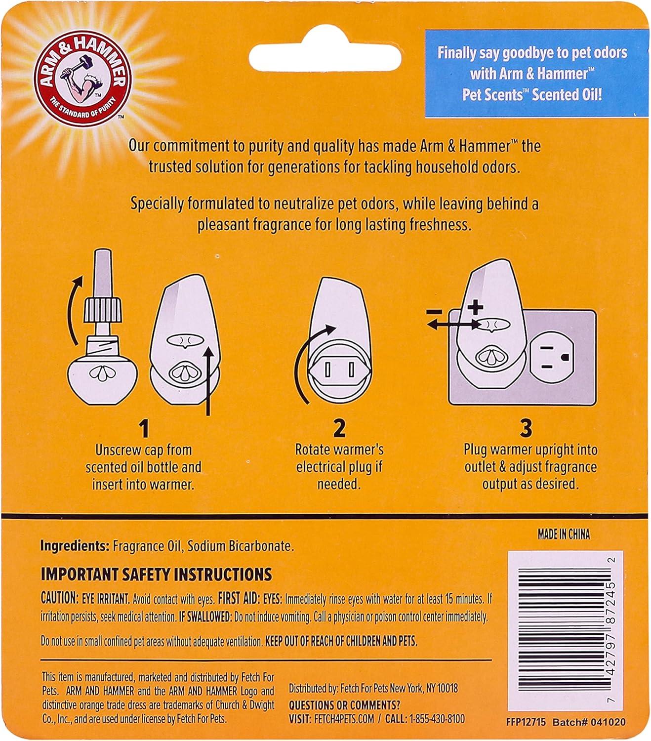 Getting rid of pet smells just got a whole lot easier with Arm & Hammer Pet Scents Plug-In Scented Oil Refills! Available in a variety of your favorite scents and safe for the whole family (pets included), these easy to use plug in air fresheners are just what you need to eliminate pet odors in the home. Great for the bathroom or any room, Arm & Hammer Pet Scents Plug-In Scented Oil Refills act as natural air fresheners and odor eliminators in one. These long-lasting scented oil refills exude freshness. They are reliable oil refills that will enhance your bedroom, bathroom, or living room with a continuous fragrance for weeks. no more pet odors to worry about. Just simple, great smells with the power of baking soda. Safe for everyday use around pets and people, pet deodorizers like these are formulated with the signature Arm and Hammer baking soda as a leading ingredient, making them odor eliminators you can trust to neutralize pet odors in the home. Safe for pets and everyone around, Arm & Hammer Pet Scents is the air freshener you've been looking for. Air fresheners like this air purifier are great odor eliminators for pet homes. Great for pet households, this could be a dog odor eliminator for home or an air freshener in place of air freshener spray or a glad plug in or plug in air freshener, air wick, scented candle, room spray, febreze spray, air freshener plug in, charcoal bags odor absorber, lavender candle, glad plugins, pet odor eliminator, room fresheners, automatic air freshener spray, cat odor eliminator, dog odor eliminators for home, air wick refills, room air fresheners.YOUR SATISFACTION IS OUR PRIORITY: If you have any questions or feedback, please reach out to us at Fetch for Pets.